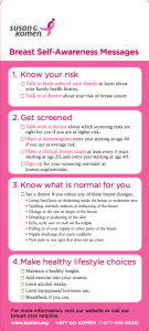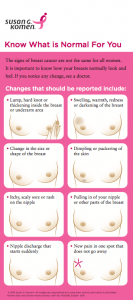 All breast cancer is not found by just feeling for a lump. Some breast cancer such as inflammatory is found on the surface of the breast. Other cancers may be detected due to unusual nipple discharge. As a breast cancer organization we must make sure we are providing accurate information. Please review the attached self- breast awareness information. Let’s share this information noting Bridge Breast Network recommends a women practices breast self-awareness and not just look for a lump. Know your body, know your family health history, and know who to call. The Bridge Breast Network is here to help.